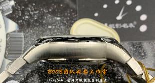 AF厂蓝气球在材质选择上同样讲究。表壳采用316L精钢材质,经过精细抛光处理,光泽度与正品无异。不过抛光表面较为容易留下划痕,日常佩戴需注意避免磕碰。表带方面,用户可选择钢带或皮带:钢带采用拉丝打磨相间的工艺,每片表带内侧处理圆润,佩戴舒适。皮带版本通常为小牛皮,也可升级为鳄鱼皮表带。表扣为折叠式设计,内部经过拉丝处理,线条平直且表面光滑。新版本表扣比老版本更薄更小,更加精致,开口两边较窄,内侧有两个螺丝固定。42mm的表径适合大多数男性手腕,由于蓝气球的表耳较短,实际佩戴不会显得过大。整体重量适中,既有质感又不会造成负担。