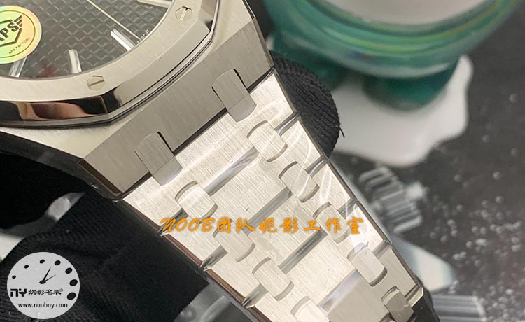 爱彼15400腕表之所以被称为钢带之王,最大的亮点就在于腕表的钢带工艺之上。APS厂新款15500同样继承了这一优势。表带做工无可挑剔,比市面上任何钢带表做工均要更上一层楼。表带采用一体式结构,与表壳无缝衔接,延续了皇家橡树的标志性设计。表带链节经倒角抛光,边缘柔和,佩戴贴合手腕。钢带头粒和表头衔接的“缓冲带”的松紧程度与正品一模一样,确保了佩戴的舒适度。表扣设计同样精致,配备了饰有“AP”字样折叠表扣,整体经过细致打磨。钢带扣上的A.P字印LOGO可以微微活动,这一细节与正品保持一致。表带的每一节都经过精心打磨,不仅外观精美,佩戴起来也非常舒适,完美诠释了“钢带之王”的美誉。