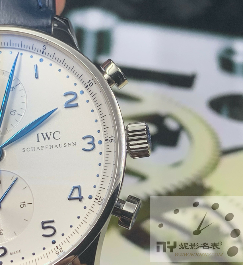 今天NOOB团队妮影工作室(客服微信415607109或15915720150)再次谈谈万国葡计,IWC万国表创立于1868年,发展至今已有130年的历史。立业的地方在夏佛豪塞,当地的钟表历史可远溯至15世纪初,足足比IWC早了459年。但直到IWC建厂制表后,人们才逐渐掌握时间的精确度。IWC的创办人是佛罗伦汀·琼斯(Florentine A. Jones),一个来自美国波士顿的工程师,他在莱茵河畔的厂房中创立了瑞士最早期的机械制表工厂,实现了他的新颖构想—以机械取代部份人工制造出更精确的零件,然后由一流的制表师装配,从而制造出品质超凡的腕表。万国葡计作为腕表界知名度最高的几款颜值腕表之一,深受国内外诸多爱表人士的喜爱。葡七和葡计作为万国家的当红小花旦,无论是正品还是复刻品的销量都是不可计数,很多复刻表小白和老司机都认识它们。目前复刻版万国葡计做得比较有名气的厂家有ZF、3A和YL,其中ZF超薄葡计最受大家关注。今天就又为大家带来了精品的万国葡计实时评测,让喜欢这款葡计的朋友能更加全面的了解它。作为万国最经典的系列,万国葡萄牙的“毒”相信有许多表友都中过。葡萄牙系列有多种配色表盘的表款,而最新推出的万国葡计劳伦斯特别版蓝白配色,也成为葡计系列极具辨识度的因素,此外40.9毫米的表壳直径,也是一般人都能驾驭的尺寸,今天NOOB团队妮影工作室为您分享下ZF出品的这款万国葡计IWIW371446顶级复刻版!